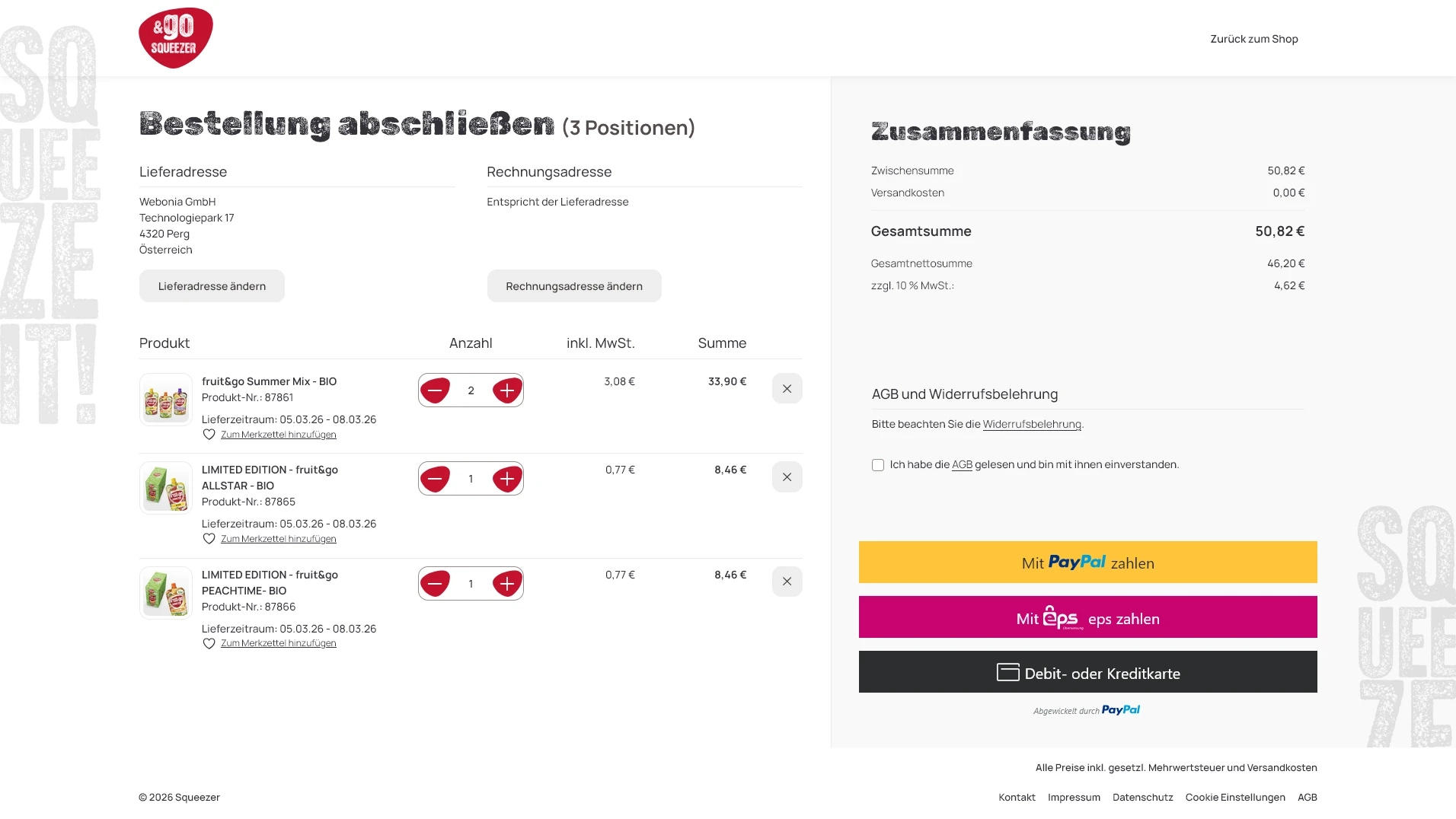 Für Squeezer wurde ein moderner, markenorientierter Webshop realisiert, der Produktpräsentation und Bestellprozess klar und reduziert abbildet. Ziel war eine Plattform, die die Frische und Einfachheit der Marke digital widerspiegelt und gleichzeitig technisch stabil sowie performant arbeitet.