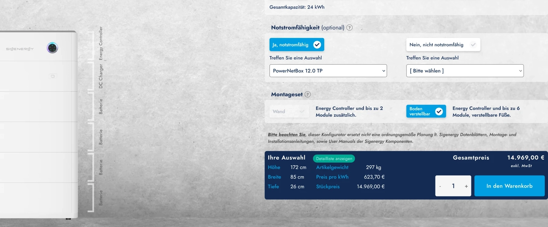 SigenStor Produktkonfigurator